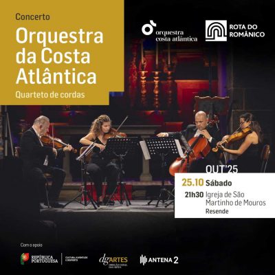 No dia 25 de outubro, sábado, pelas 21h30, na Igreja de São Martinho de Mouros, em Resende, a Rota do Românico promove concerto de música de câmara pelo quarteto de cordas da Orquestra da Costa Atlântica.
