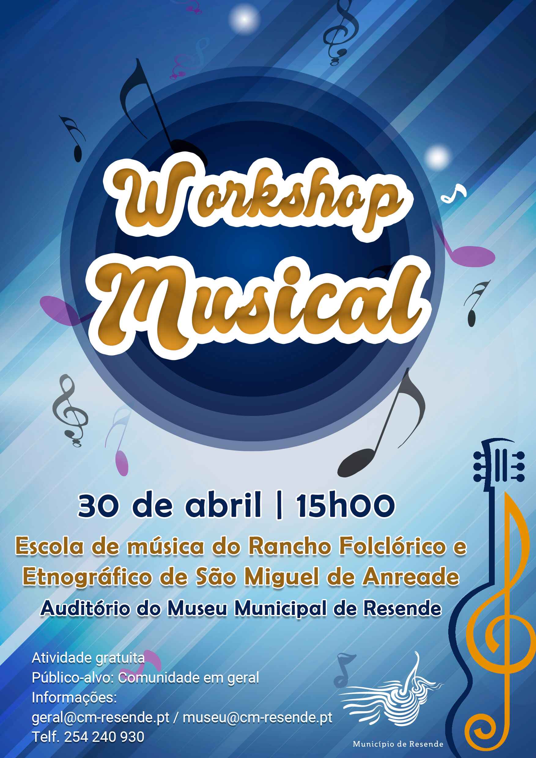 No próximo domingo, dia 30 de abril, pelas 15h00, o Município vai promover um Workshop Musical com Rancho Folclórico e Etnográfico de São Miguel de Anreade, a ter lugar no Museu Municipal de Resende.