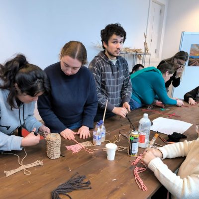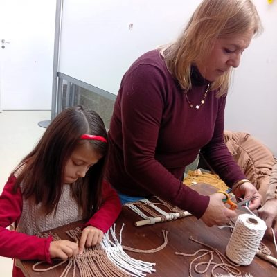 Durante a atividade, os participantes tiveram a oportunidade de contactar com os princípios básicos do macramé, aprender os principais tipos de nós e perceber como, a partir dessas técnicas, é possível criar peças únicas e cheias de identidade.