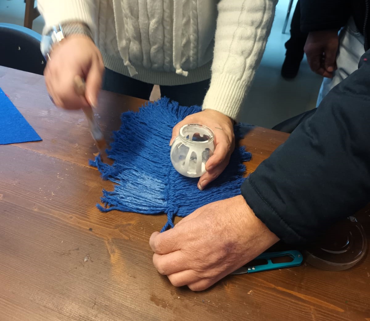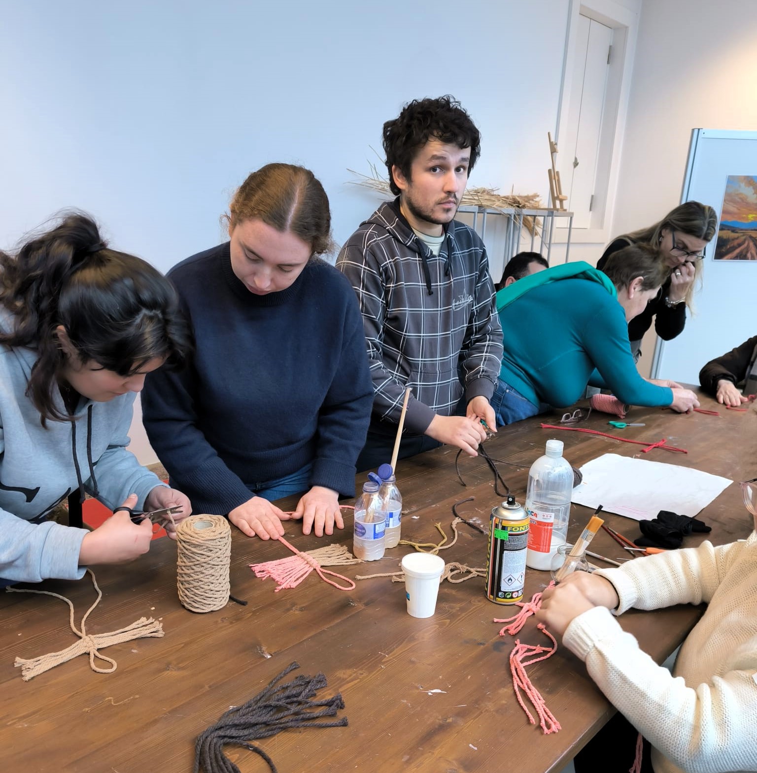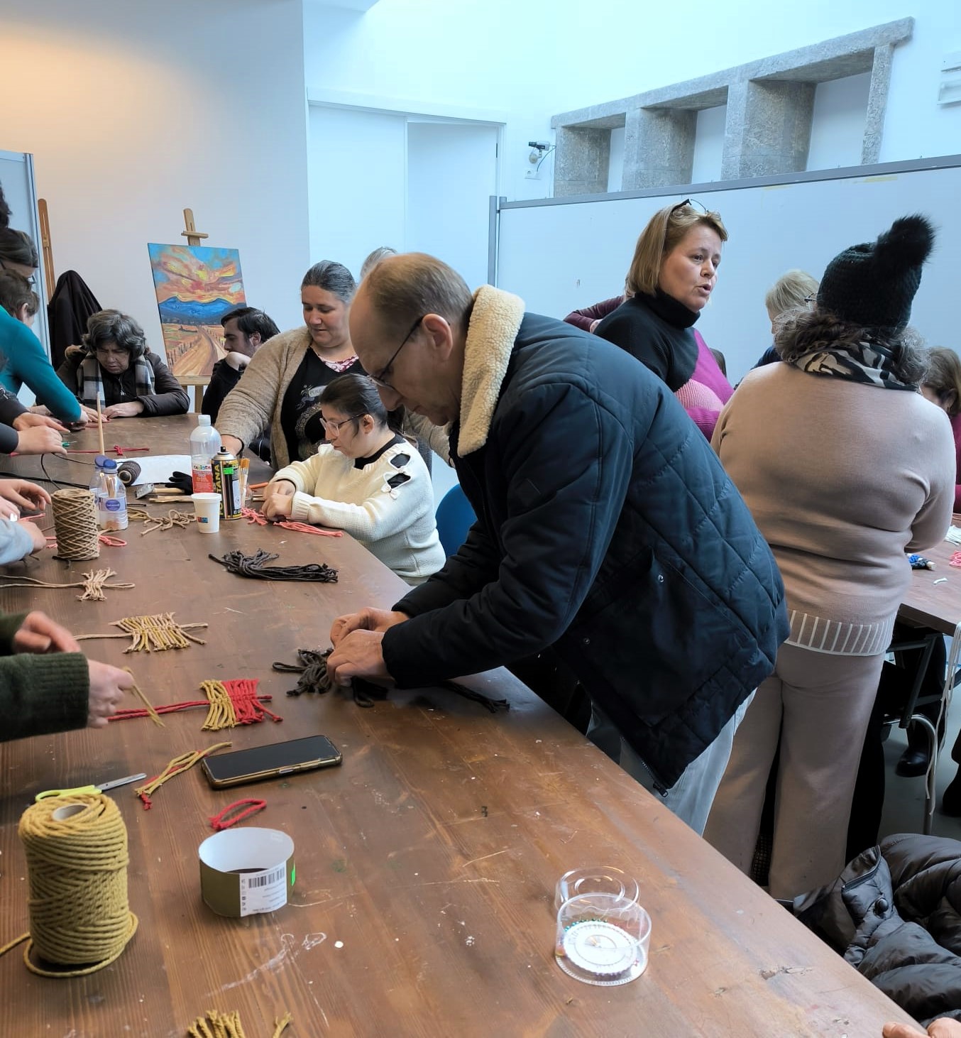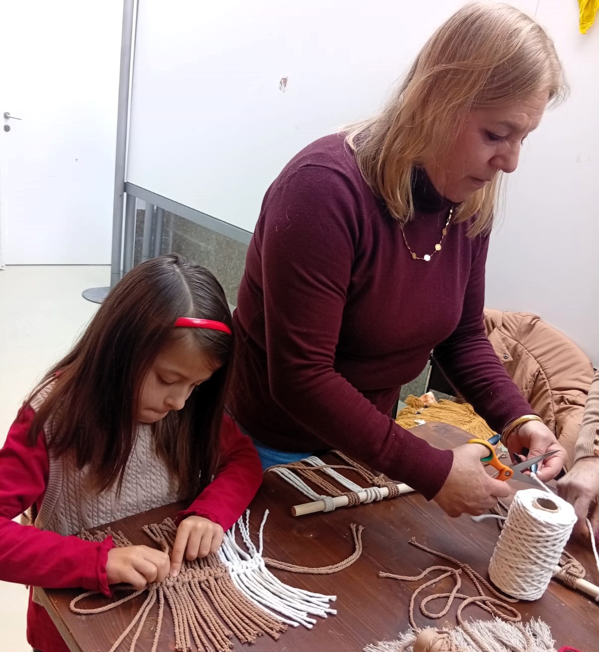 Durante a atividade, os participantes tiveram a oportunidade de contactar com os princípios básicos do macramé, aprender os principais tipos de nós e perceber como, a partir dessas técnicas, é possível criar peças únicas e cheias de identidade.