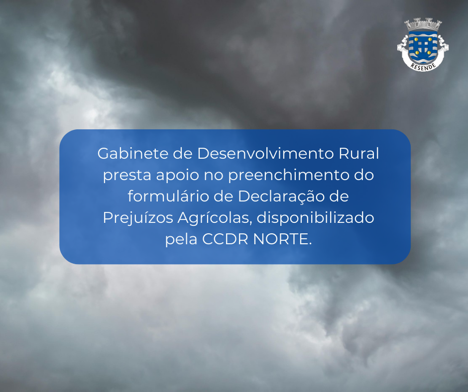 Informamos que o Gabinete de Desenvolvimento Rural do Município de Resende encontra-se disponível para prestar apoio no preenchimento do formulário de Declaração de Prejuízos Agrícolas, disponibilizado pela CCDR NORTE.