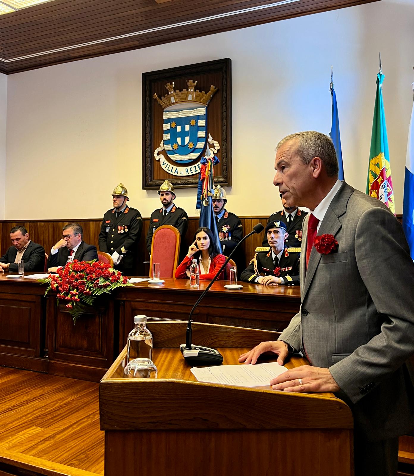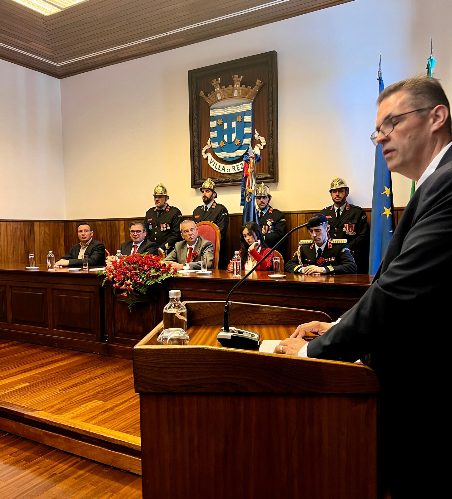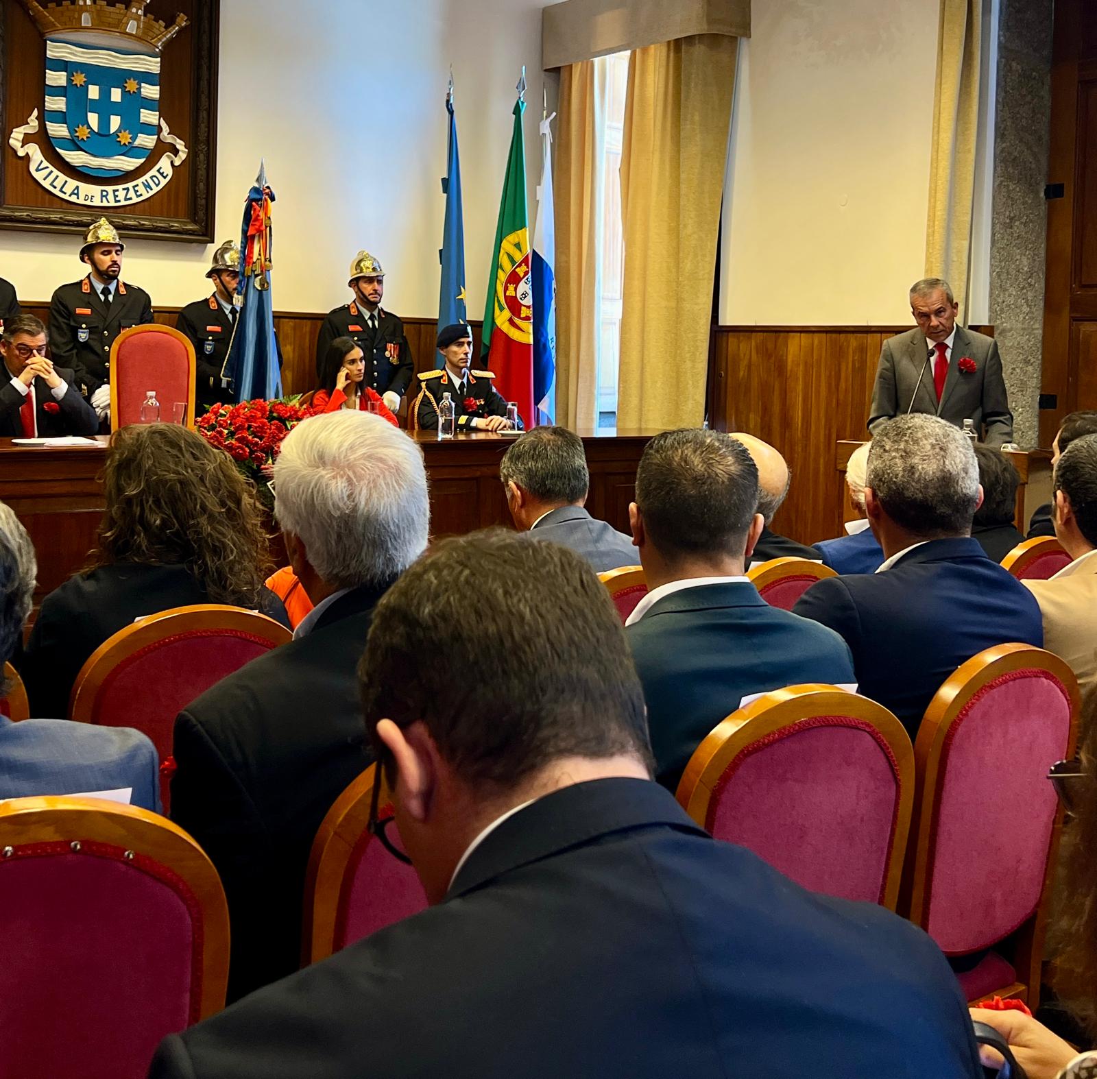 Pelas 11h30, decorreu, no Salão Nobre dos Paços do Concelho, a Sessão Solene Comemorativa do 52.º Aniversário do 25 de Abril, presidida pelo Presidente da Assembleia Municipal de Resende, António Pinto Marques.
