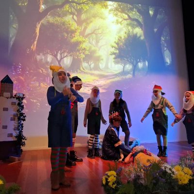 Baseada na história original de Branca de Neve, a peça transportou o público para um universo de fantasia onde valores como a amizade, a coragem e a bondade ganham especial destaque. Através de uma abordagem divertida, dinâmica e envolvente, o espetáculo encantou miúdos e graúdos, recriando uma narrativa intemporal que continua a atravessar gerações.