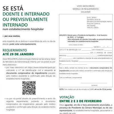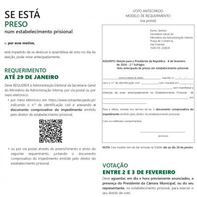 Eleitores que pretendam votar antecipadamente em Mobilidade – inscrições de 25 a 29 de janeiro.
