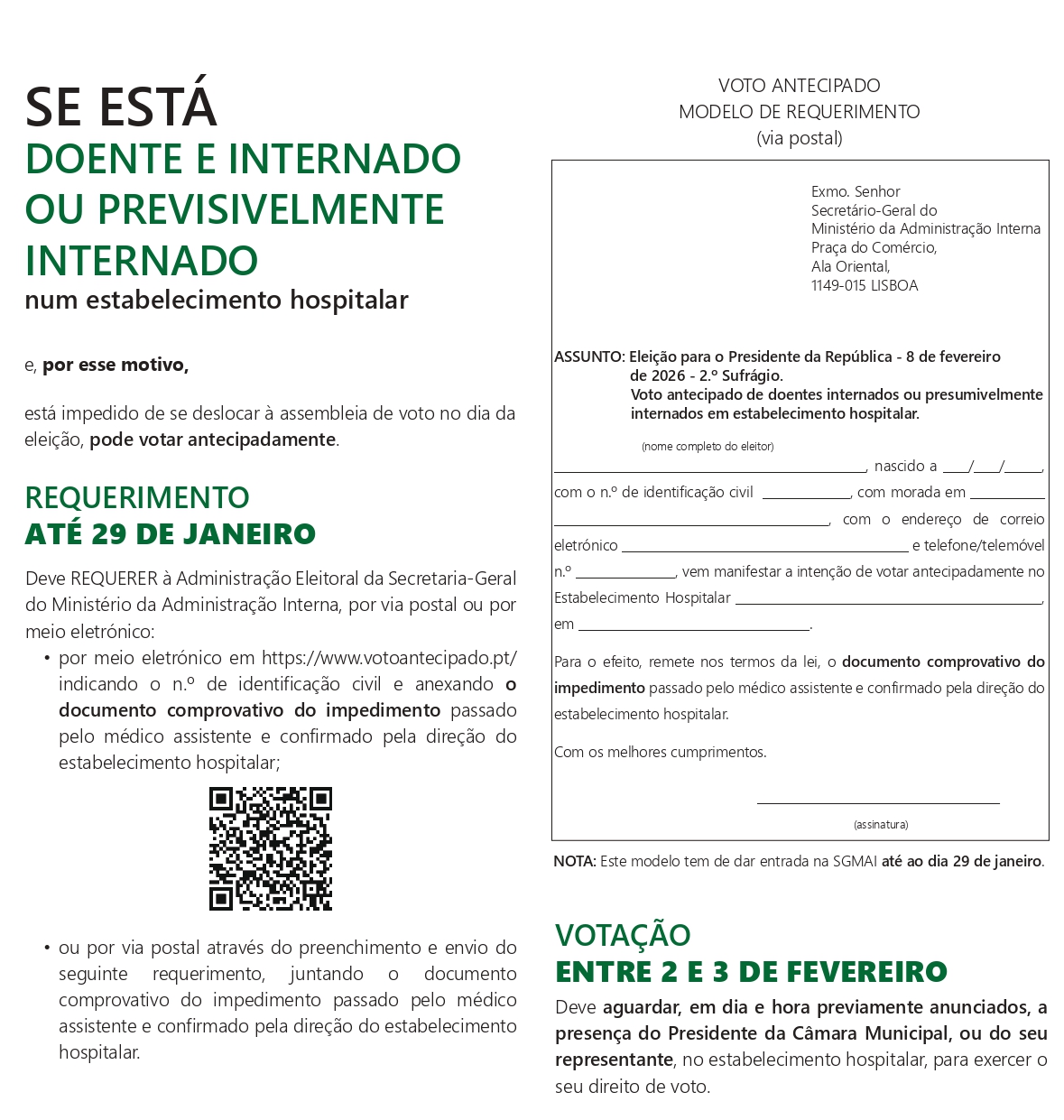 Eleitores que pretendam votar antecipadamente em Mobilidade – inscrições de 25 a 29 de janeiro.