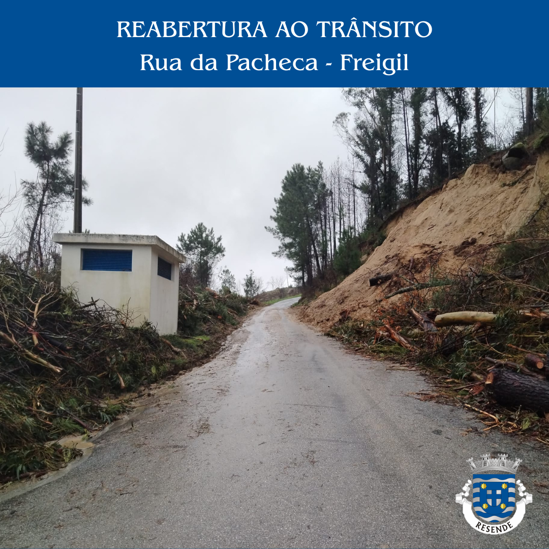 Informamos que a Rua da Pacheca, em Freigil, já se encontra aberta à circulação rodoviária, estando restabelecidas as condições de trânsito naquele local.