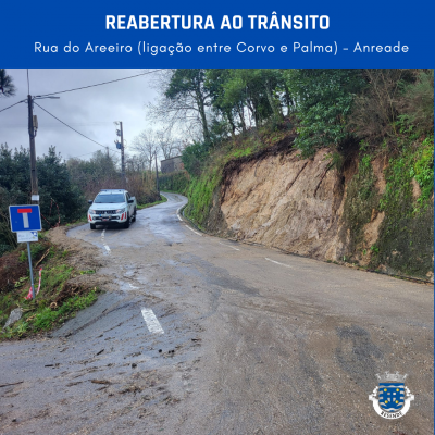 O Município informa que a Rua do Areeiro (ligação entre Corvo e Palma) – Anreade encontra-se aberta à circulação rodoviária, estando restabelecidas as condições de segurança ao trânsito naquele local.