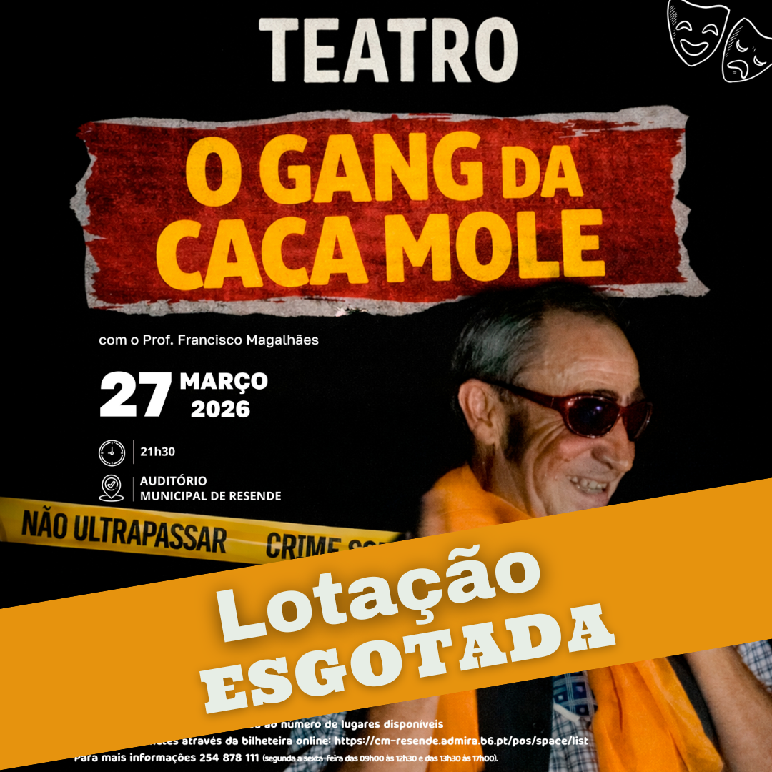 Informamos que foi atingida a lotação esgotada para a peça de teatro “O Gang da Caca Mole”, a decorrer esta sexta-feira, 27 de março, às 21h30, no Auditório Municipal de Resende.