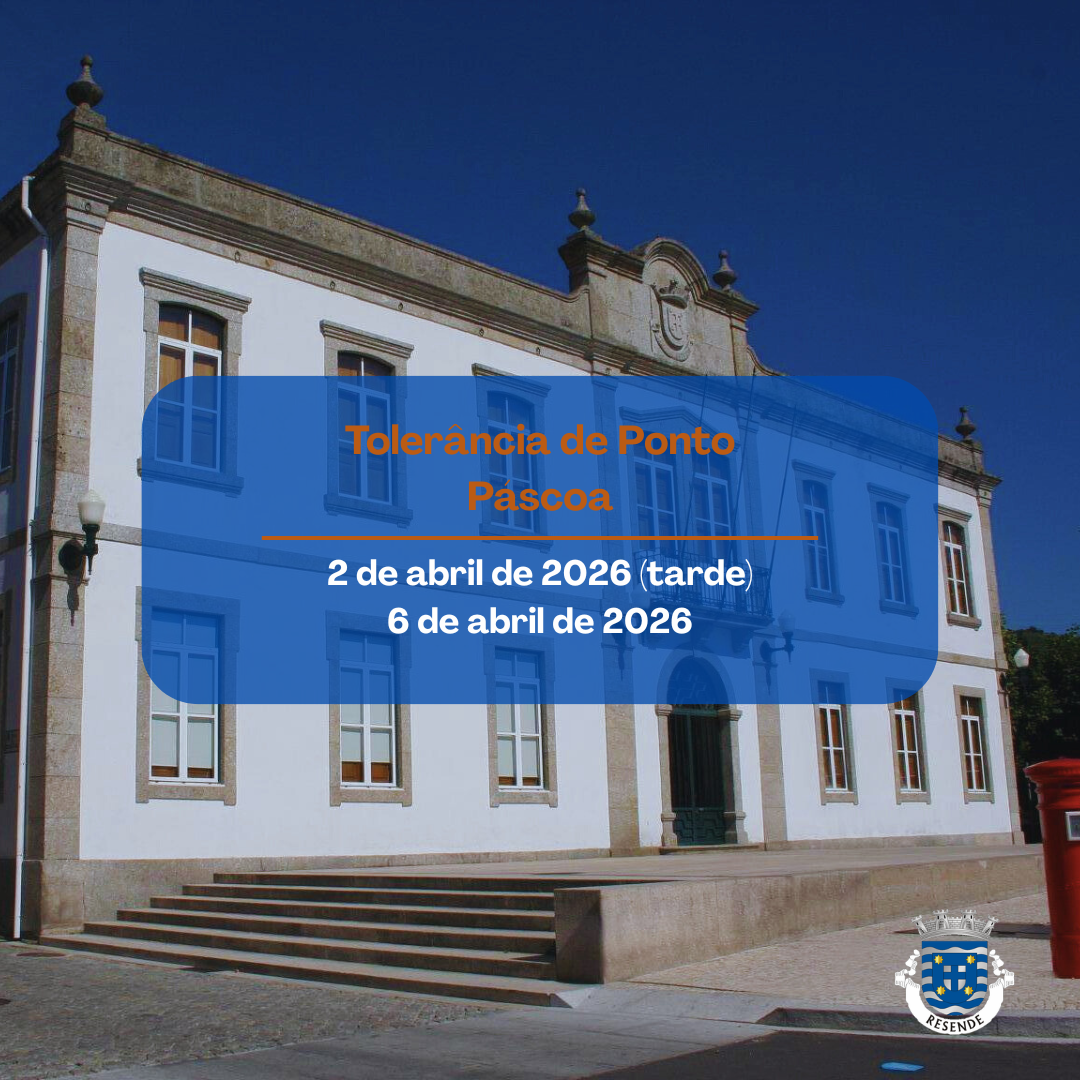 Informamos que, atendendo ao período de celebração da Páscoa, o Presidente da Câmara Municipal de Resende, Fernando Silvério, concedeu tolerância de ponto aos trabalhadores da autarquia na tarde de quinta-feira, 2 de abril, e durante todo o dia de na segunda-feira, 6 de abril de 2026.